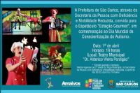 Em comemoração ao Dia Mundial de Conscientização do Autismo, 2 de abril, a Prefeitura Municipal de São Carlos, por meio da Secretaria da Pessoa com Deficiência e Mobilidade Reduzida, realiza neste 1º de abril, a partir das 19h, no Teatro Municipal “Doutor Alderico Vieira Perdigão” apresentação gratuita do espetáculo “Estação Gourmet” do grupo Estação do Circo.